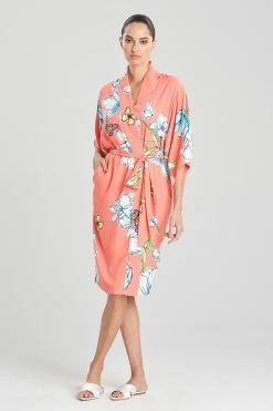 Slip into the dramatic floral and butterfly printed charmeuse.